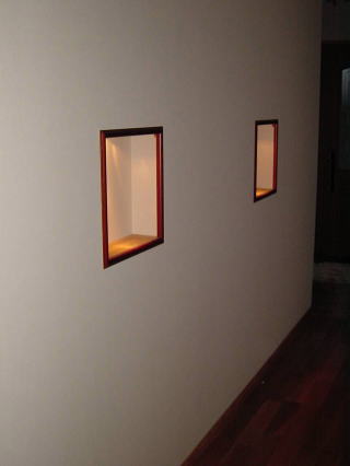廊下の壁にニッチを2カ所付け、その中の上部に調光可能な電球を埋め込みました。