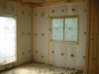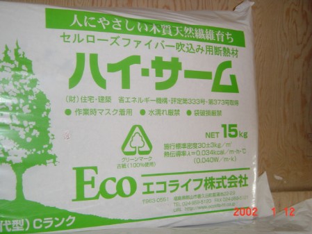 その代わり、我が家は、地球環境にも優しい、セルロースファイバー(古新聞等わた状にしたような物で調湿性能等に優れている)にしました。